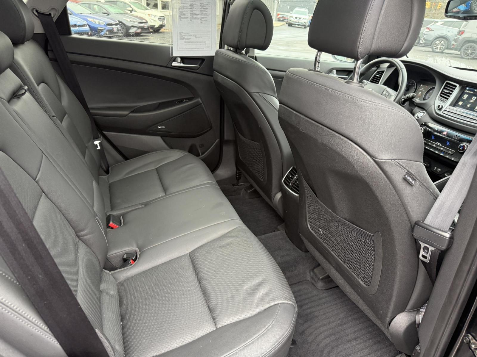 Elevate your driving experience with this 2017 Hyundai Tucson Limited Ultimate AWD, blending sophisticated features, advanced safety, and impressive performance. Powered by a 1.6L Turbocharged GDI I4 engine and paired with a 7-speed dual clutch automatic transmission, this SUV delivers dynamic handling and up to 28 MPG highway. Inside, enjoy a premium leather interior with heated and cooled front seats, heated rear seats, and dual-zone automatic climate control for maximum comfort. The expansive power panoramic moonroof floods the cabin with natural light, while the 8.0" touchscreen with navigation, Apple CarPlay, and Android Auto keeps you seamlessly connected. Safety is enhanced with blind spot monitoring with rear cross traffic alert, lane departure warning, and a backup camera, giving you confidence on every drive. Outstanding audio quality comes from an 8-speaker, 315-watt Infinity sound system, perfect for your favorite playlists. Designed for all-weather capability and style, this Tucson features HID headlights, and its AWD system ensures stability and security across diverse terrains. It also comes with a 3 month/3,000 mile warranty for peace of mind. Call or text us today to schedule your test drive! Don’t miss the chance to own a luxurious, tech-forward SUV that’s ready for anything—make this 2017 Hyundai Tucson Limited Ultimate AWD yours today!